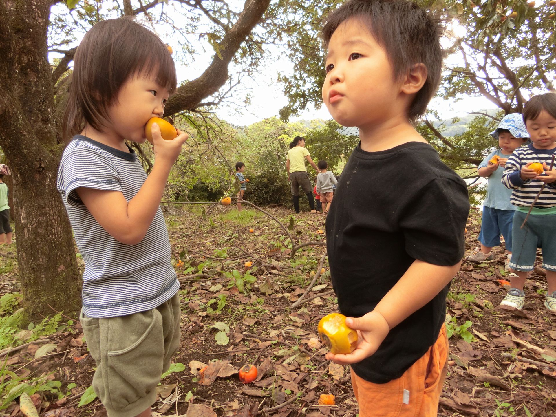 自分でもぎ取る柿はとくべつ美味しかったようです。
