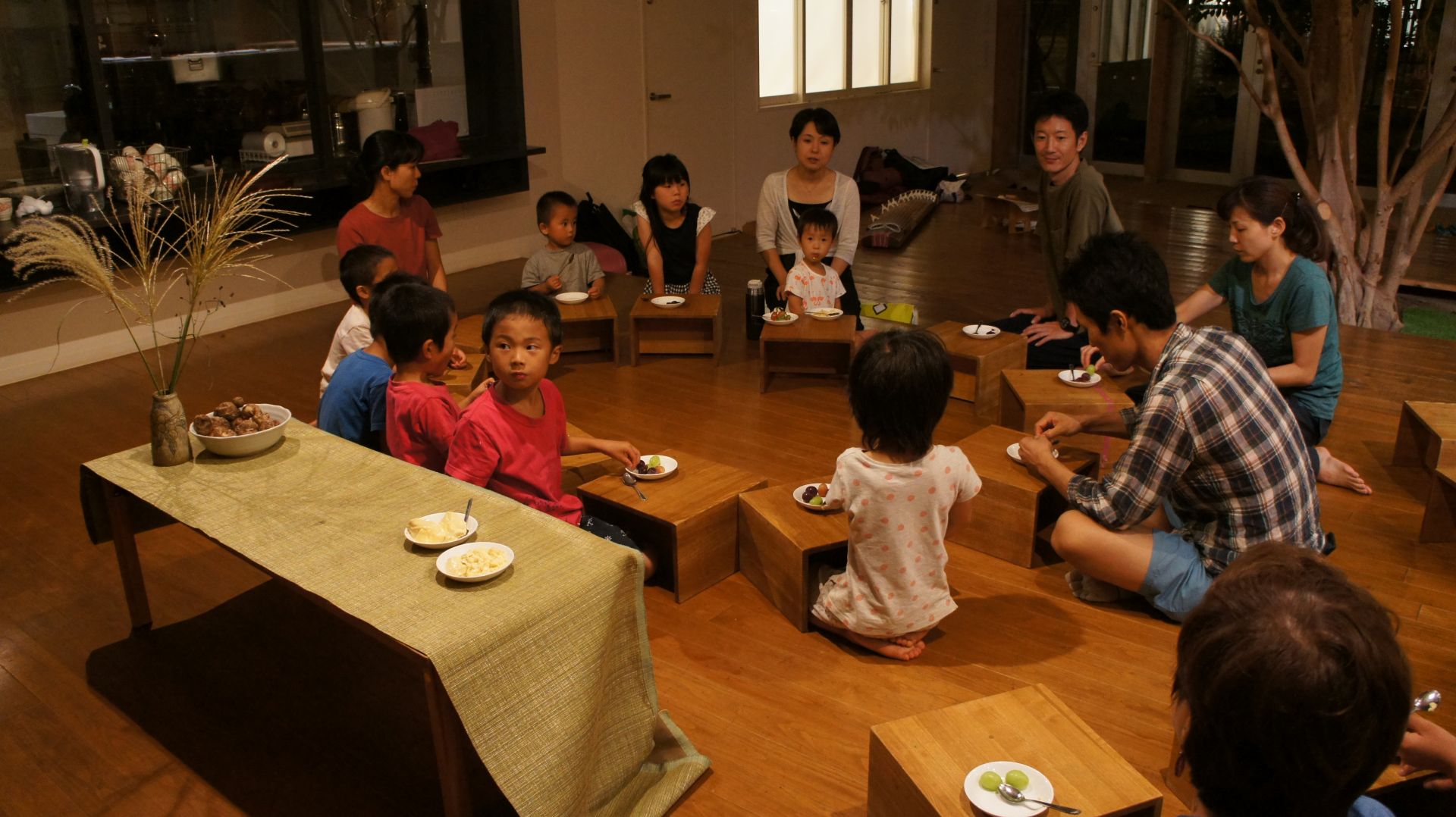 今日は、お母さん、お父さんたちもお月見会に集まり楽しいひと時を一緒に過ごします。