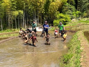 この日は、とても暑い日だったので、子どもたちも躊躇することなく田んぼに飛び込みます。