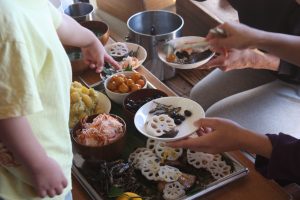 2024.01.12 本日のお昼ご飯とおやつ(1/12) ・お赤飯 ・おせち料理 栗きんとん・田作り・黒豆・きんかん・紅白なます・ぶりの照り焼き ・お吸い物 今日は少し遅れたお正月料理の給食でした。各クラスで願いを込めて頂きました。 【本日のおやつ】おせんべい・みかん・煮干し
