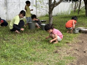 大きい子たちが草むしりをしていると、小さい子たちもやってきます。