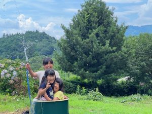 女の子たちもドラム缶の水風呂がお気に入りです。