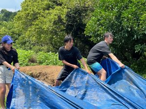 「ブルーシートに入ったまま引っ張ったほうが早いんじゃないかな。」