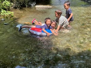 夏の四十八瀬川は、子どもたちの大好きな遊び場