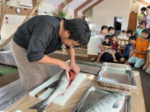 日本料理に携わってきた身としては、なんとかして大切にして行きたい事を子供達に伝えられたらと思って毎回鮭を捌きながら話しておりますが、なかなか難しいです。