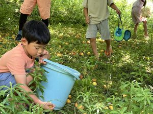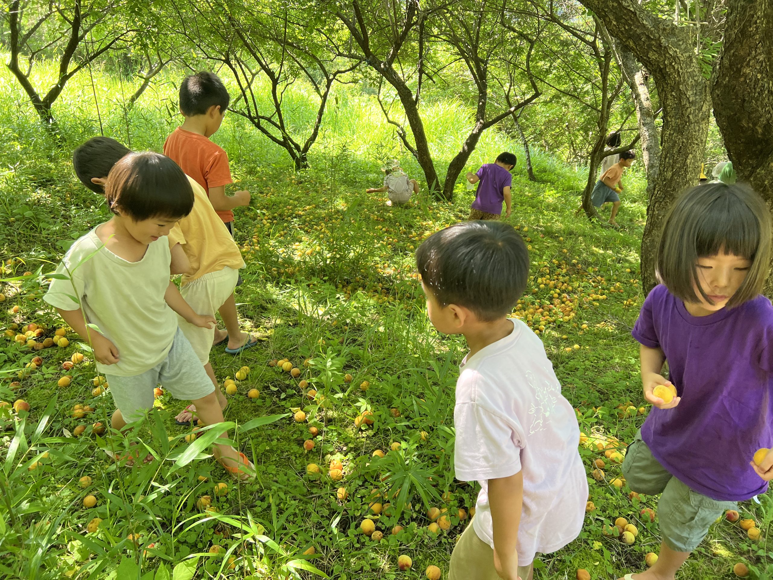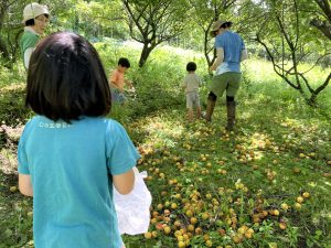 梅畑には、完熟した梅がそこたらじゅうに落ちています。