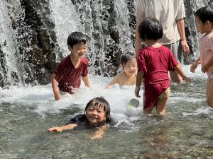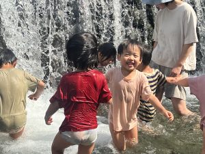 きれいな水しぶきがあがって、友だちと顔を見合わせてわらう。