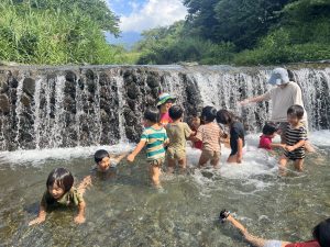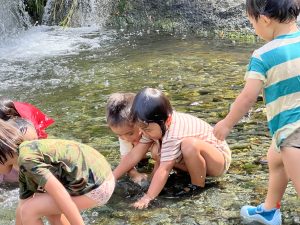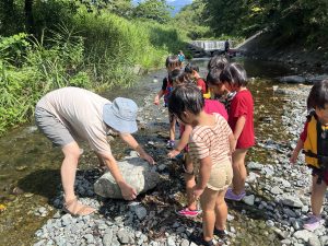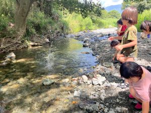 やぎ組の子どもたちが四十八瀬川に遊びに来ました。