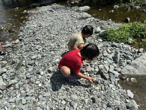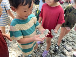 「みて、いたよ。」汗をいっぱいかきながら小さなお魚をさがします。
