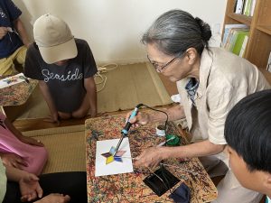 ステンドグラスづくりでは、はんだ付けに挑戦