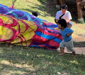 2025.09.28 さんま会 2025 2025.9.26 秋の味覚 さんま 今年は大漁だそうです。 毎年恒例のハレノヒ保育園のさんま会 炭火でこんがり焼けました。 ことり組(1歳児)の子どもたちから、骨付きでいただきます。 「あべちゃん がんばって!」 子どもたちが応援します。