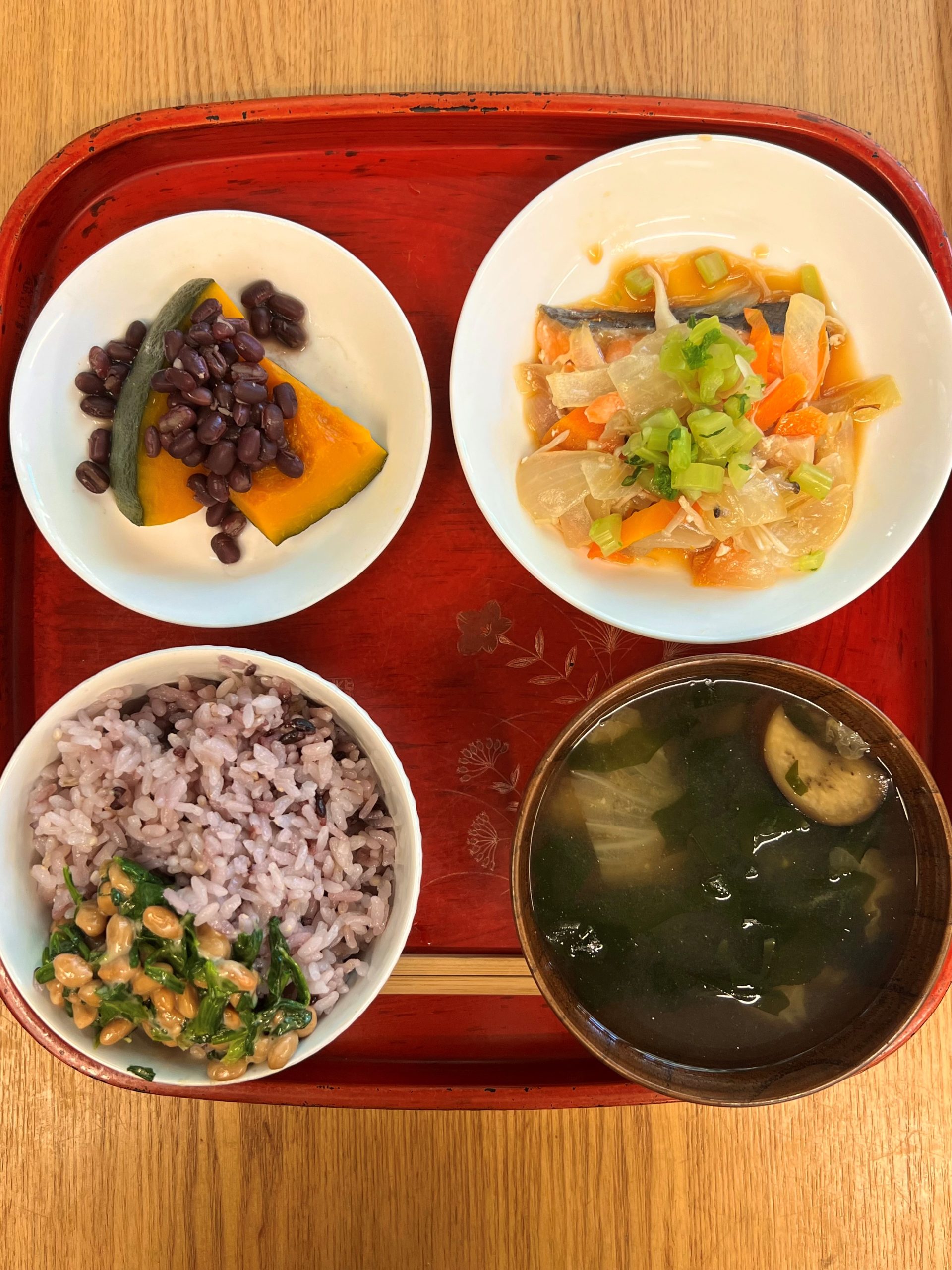 2025.10.30 本日のお昼ご飯とおやつ(10/30) ・御飯+納豆 ・鮭のホイル焼き ・かぼちゃのいとこ煮 ・みそ汁 【本日のおやつ】ポテトとツナのぺったんこパン、キャンディチーズ 乳児棟にはキャンディチーズの代わりにみかんが提供されました
