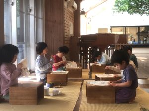 卒園まであと少し、子どもたちは、まり袋の製作に取り組みます。