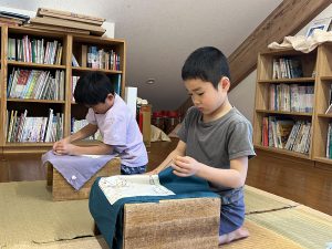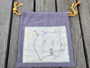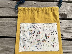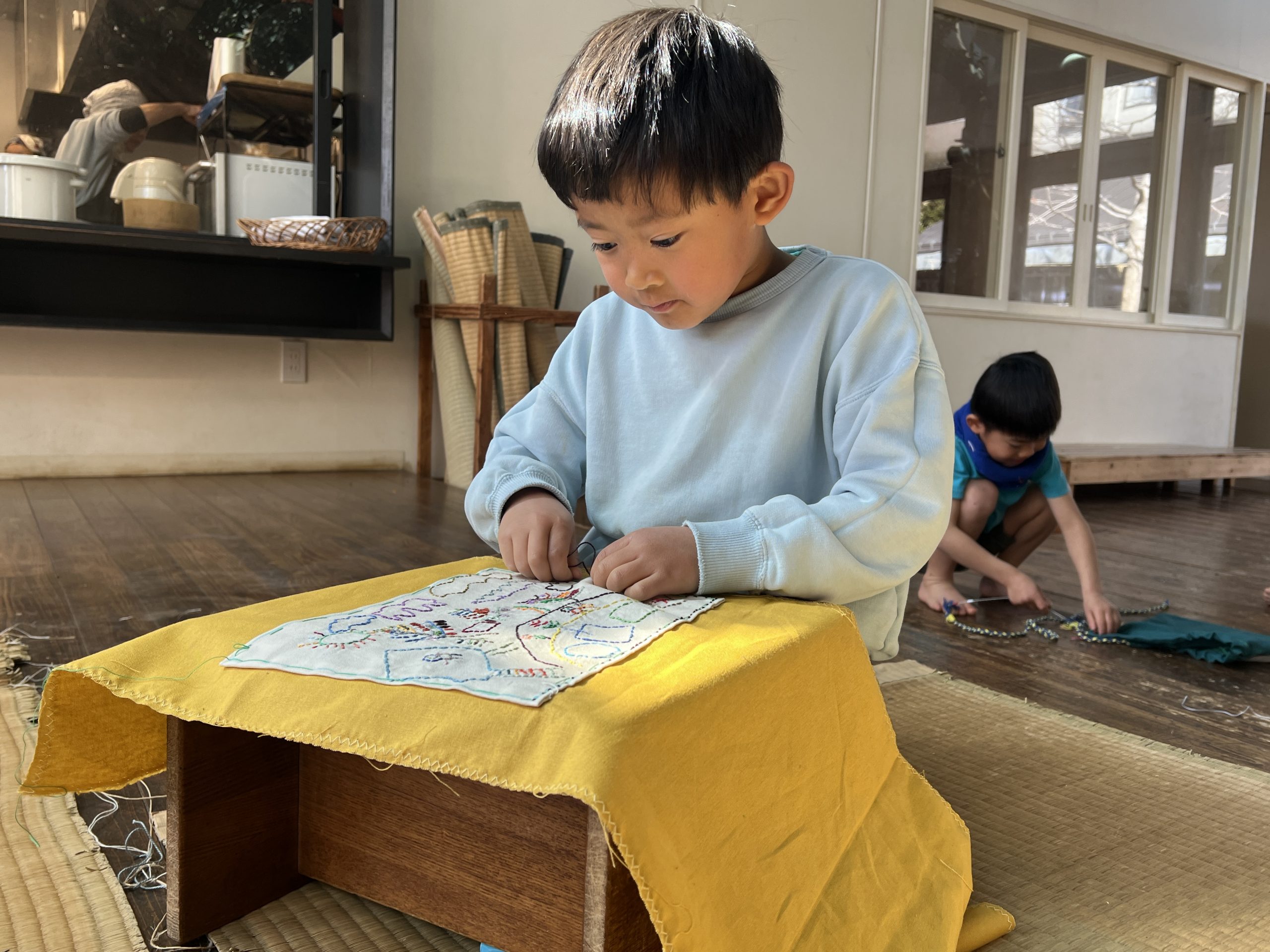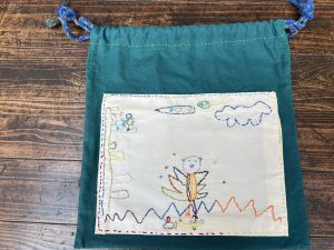 自分の絵が少しずつ色とりどりの刺繍の絵になっていきます。
