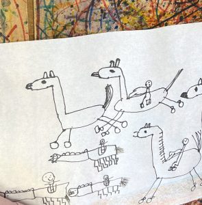 あ、すごいと思ったのは、重なりを描いている子もいました。奥にいる馬と手前にいる馬の足が重なっていて、