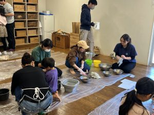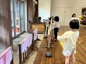 その日、来られなかったお母さんの子どもの分もみんなで一緒に染めます。