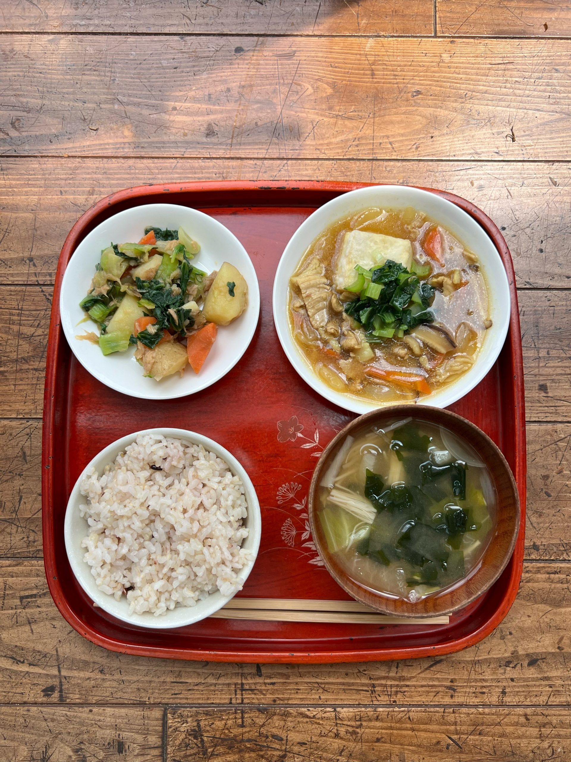 ・御飯+納豆 ・豆腐ステーキ ・ほうれん草のきなこ和え ・みそ汁 【本日のおやつ】 しらすビスコッティ、りんご ...
