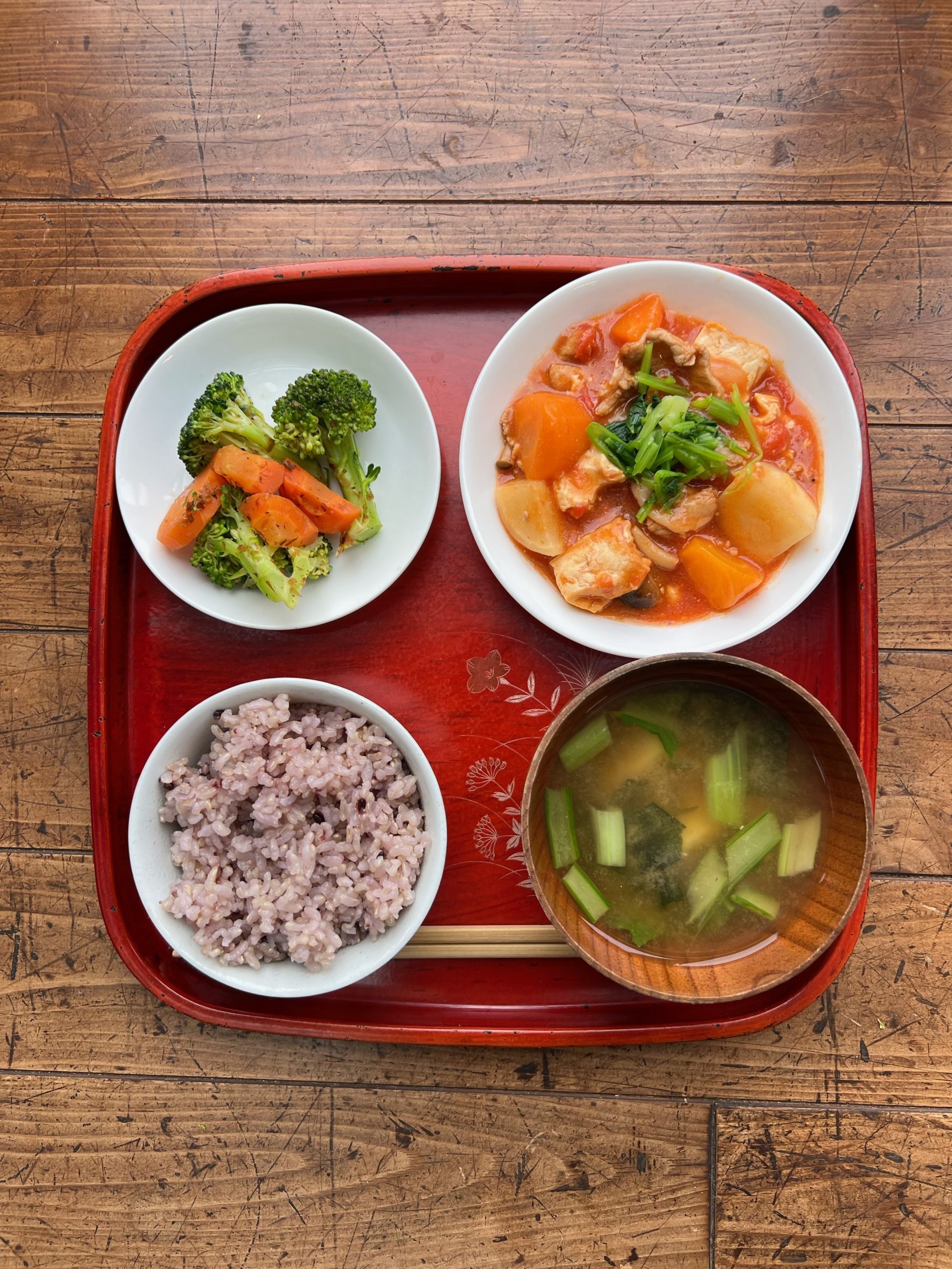 ・御飯+納豆 ・豚肉と玉ねぎのアップルソテー ・根菜重ね蒸し ・みそ汁 【本日のおやつ】しらすビスコッティ、大根のおかか煮 ...